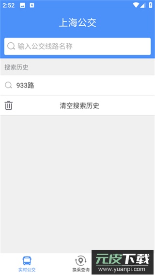 2、主页分为实时公交与换乘查询两大板块,点击实时公交下的搜索框,输入想查询的线路,例如933路;