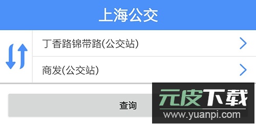 在应用内进入第二个栏目“换乘查询”,首先输入离起点最近的公交站点;