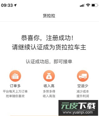 6、信息补充完整并提交审核后,即可正式成为平台认证司机,开始在线接收货运订单。