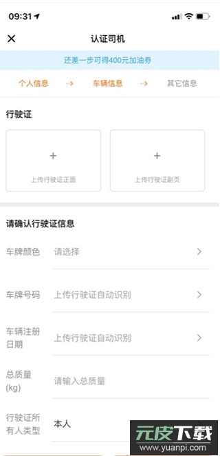 5、同时按要求上传行驶证照片并填写其他必要的个人及车辆资料;
