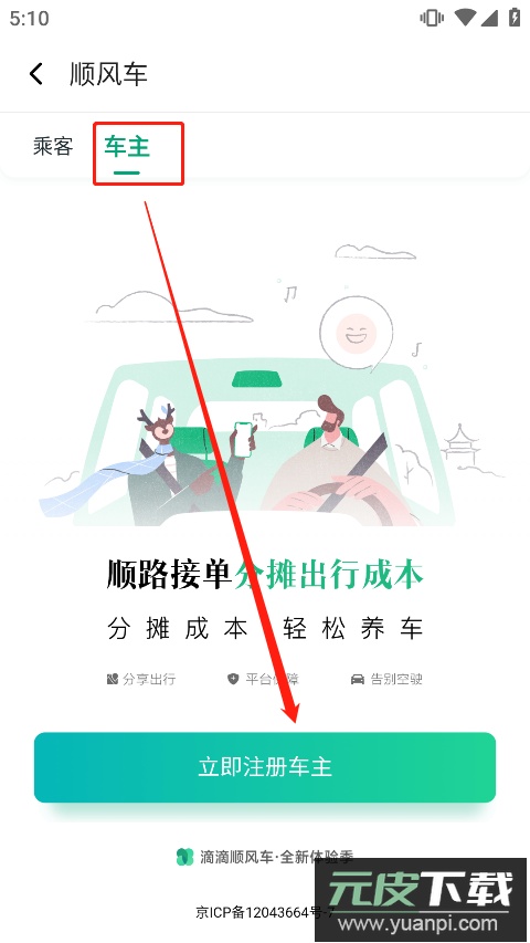 2、切换至“车主”栏目,点击注册按钮,根据指引完成车主身份认证。