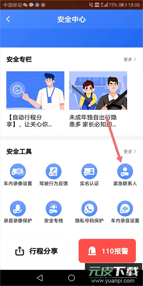 2、在跳转的安全中心页面里找到并点击【紧急联系人】选项