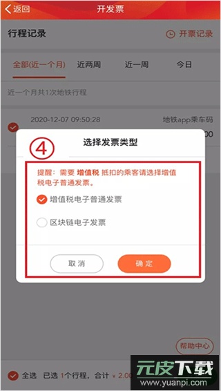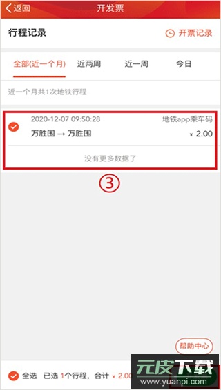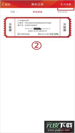 2、进入页面后可查看乘车记录,点击右上角的开发票按钮;