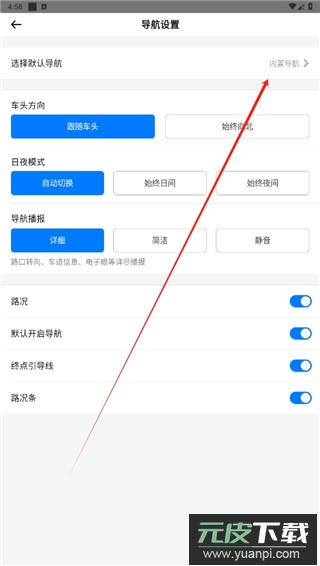 4、点击默认导航,选取手机中已安装的地图应用即可完成关联。