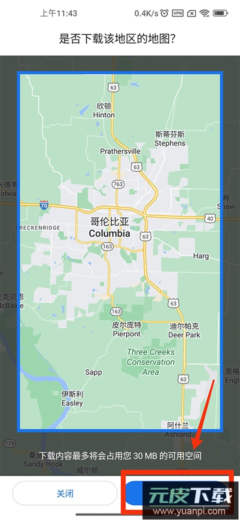 3. 使用离线地图前需要先下载区域数据,在地图界面点选希望下载的具体区域。