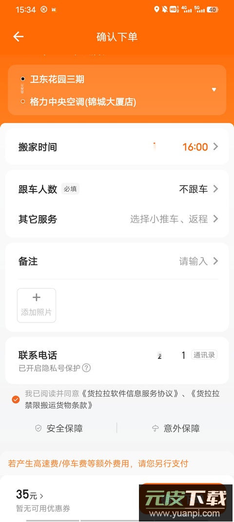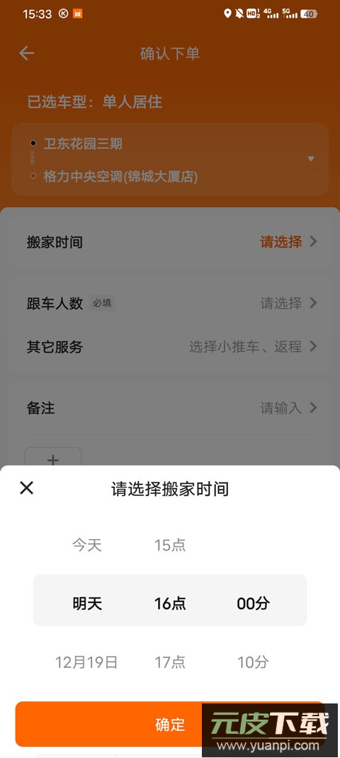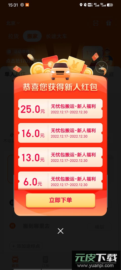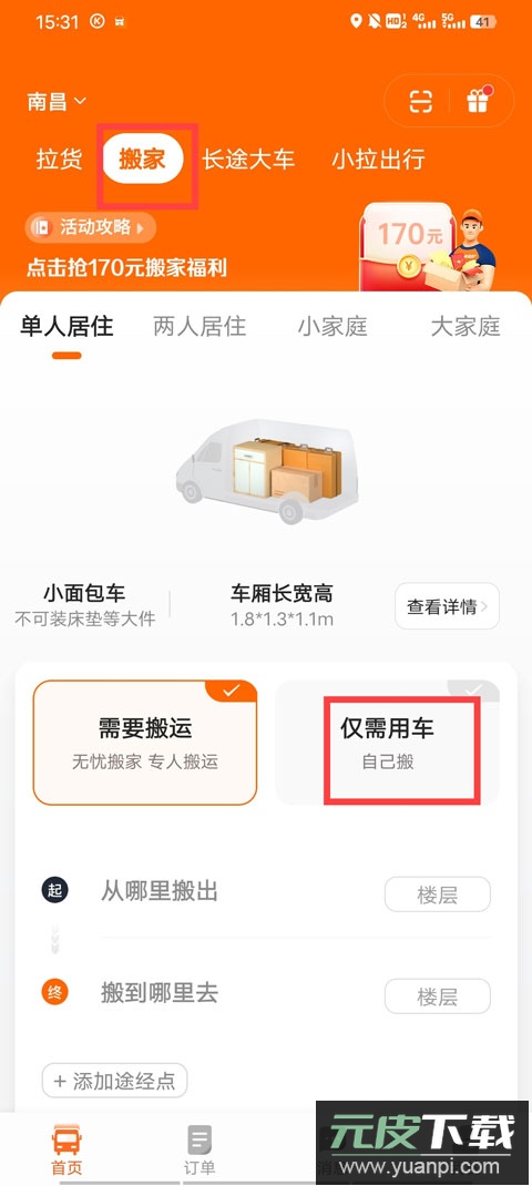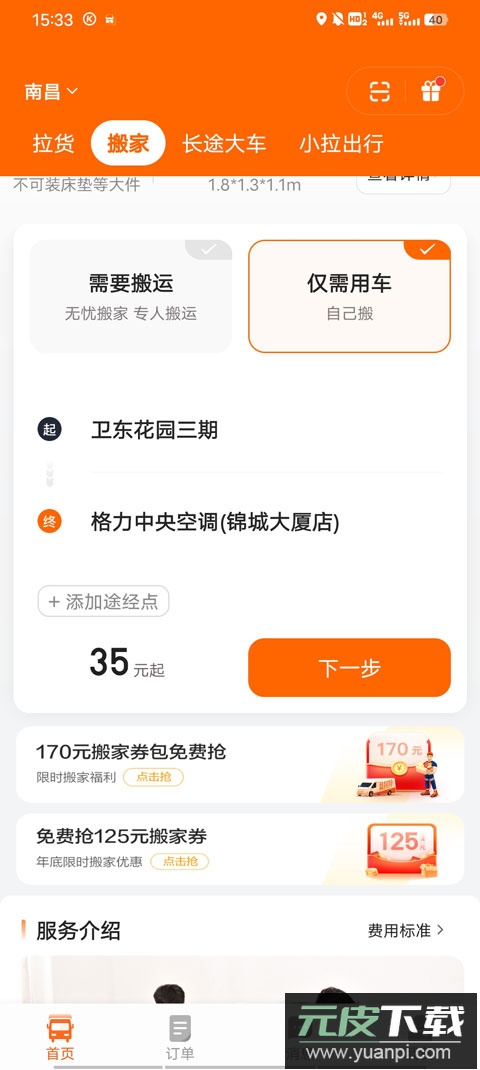 2. 根据需求选择服务类型,例如拉货、搬家、长途大货车等。