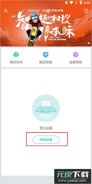 2、登录后进入应用首页,即可添加行车记录设备,建立手机与设备的连接;