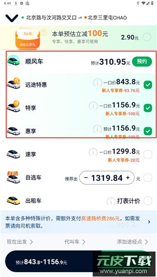 2、根据需求选择不同车型套餐,各套餐价格清晰展示;