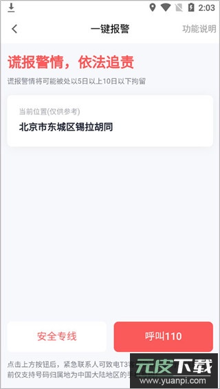 3、内置一键报警功能,提升单人出行时的安全保障;