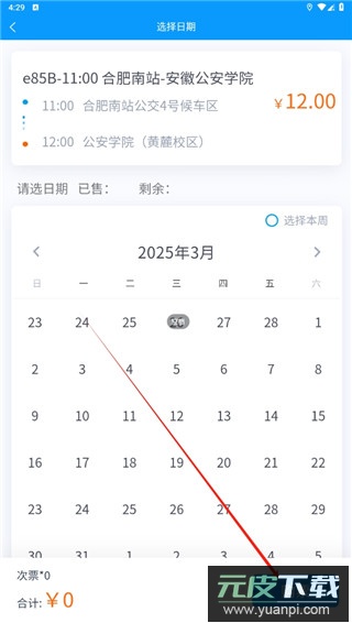 4、选定乘车日期后,点击页面下方的购票并完成支付即可