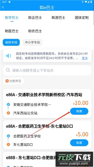 3、先选择巴士类型,再挑选需要购买的车票,点击购票按钮