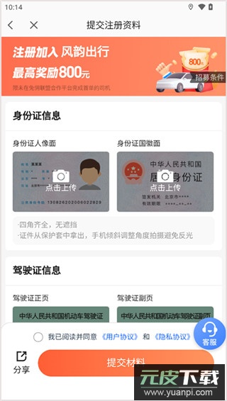 5、有车车主选择对应方式后,按提示上传身份证、驾驶证等资料,提交后等待平台审核即可。