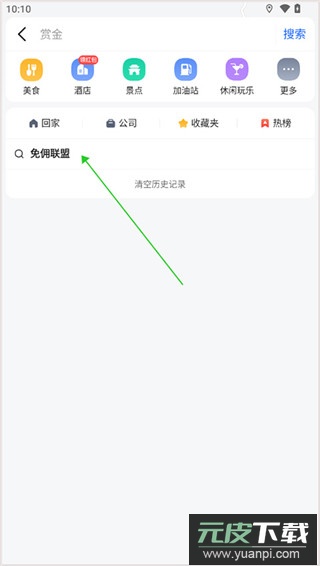 2、在搜索页面输入“免佣联盟”关键词,若之前搜索过,下方会显示历史记录;