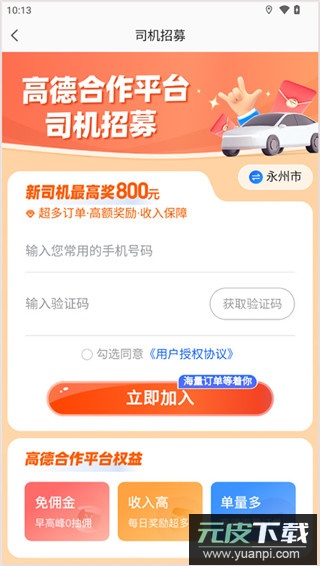 3、进入司机招募页面后,填写手机号码与验证码,阅读并同意相关协议,点击立即加入;