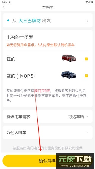 选择需要的车型,平台通常提供两种选项,点击确定呼叫即可;