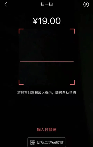 2、收款操作多样:顾客可扫描静态码付款;商户也能在收款界面选择扫一扫进行反扫收款;或切换至动态二维码让顾客扫描支付。