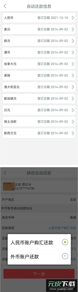- 多币种信用卡需按币种分别设置自动还款,包括“人民币账户购汇还款”与“外币账户还款”两类方式;