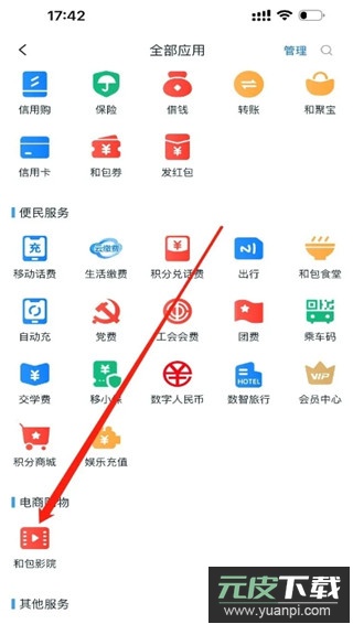 进入全部应用页面后,选择【影院】即可查看相关服务。
