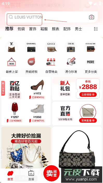 成功登录后,有意购买二手商品的用户,可以直接在搜索框内输入目标时尚品牌的名称进行查找。