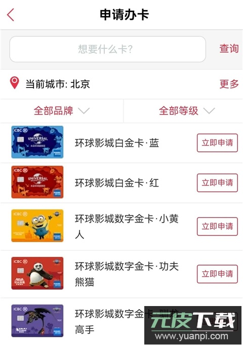 第二步,浏览并选择想要的信用卡产品,点击立即申请按钮;