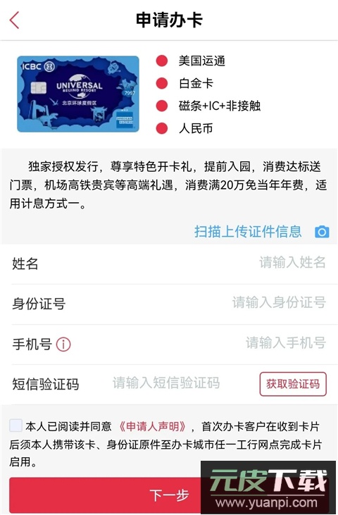 第三步,如实填写姓名、身份证号与手机号等基本信息,获取短信验证码;仔细阅读申请人声明并确认同意,勾选后进入下一步;