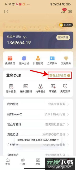 3、在“我的”页面中找到“业务办理”入口,点击其右侧的“查看全部业务”选项。