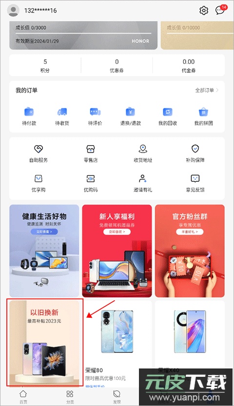 若希望更换新机却顾虑预算,可以尝试使用荣耀商城内的以旧换新功能。具体操作步骤如下。