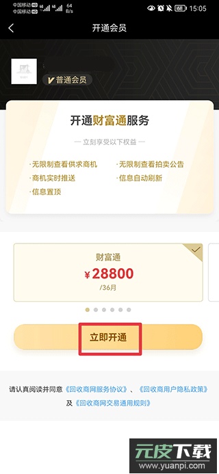 三、选定需要升级的会员类型后,点击立即开通按钮。