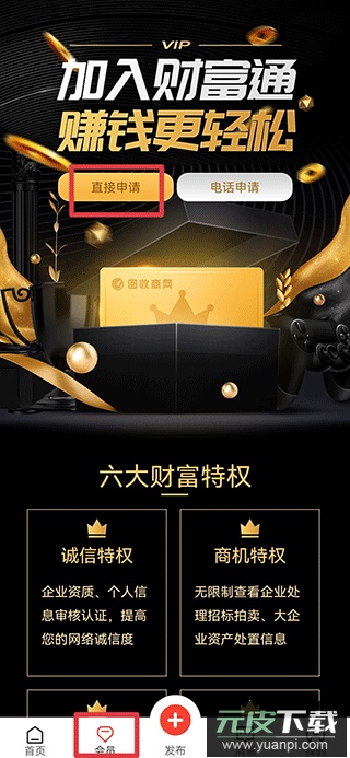 一、启动软件,进入会员中心页面,点击直接申请选项。