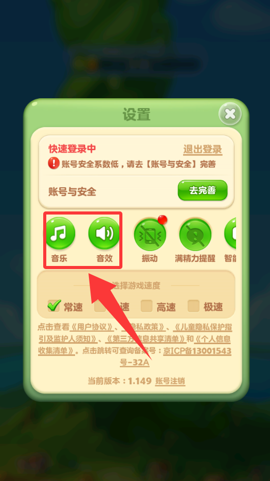 1. 首先进入游戏界面,点击设置选项,打开声音以获得更完整的游戏体验。