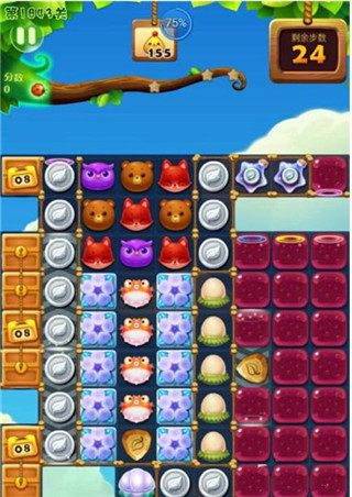 游戏场景以清新的藤蔓风格为主,界面设计清晰明了,配合华丽爽快的特效与可爱活泼的小动物形象,必将为你带来欢乐的休闲时光。