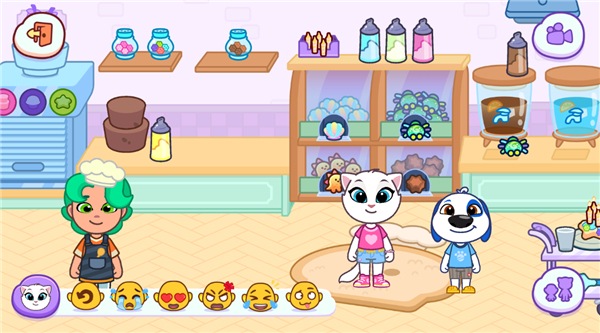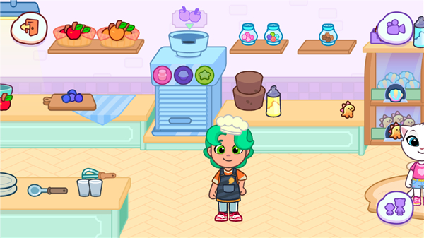 5、场景内支持各种互动操作,你可以给角色喂蛋糕,也可以直接动手制作全新的甜品;