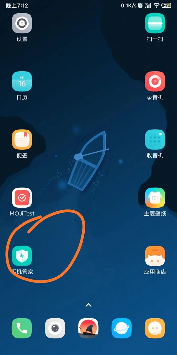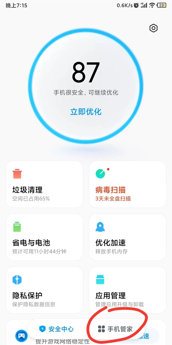 ① 在手机上打开安全中心或手机管家应用;
