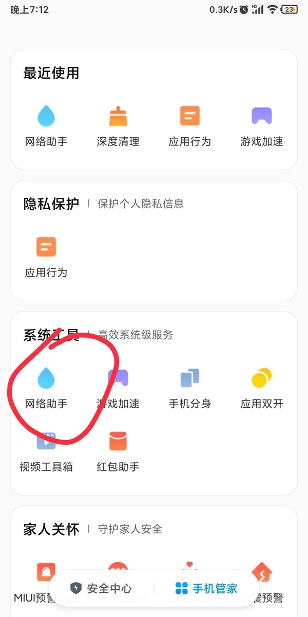 ③ 找到并点击网络助手功能;