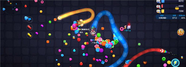 2、以大欺小“包围刹”:当你的长度占据优势时,可以在地图上包围小蛇;将其圈在你的身体范围内,等待它自行撞上,轻松获得击杀与糖果。