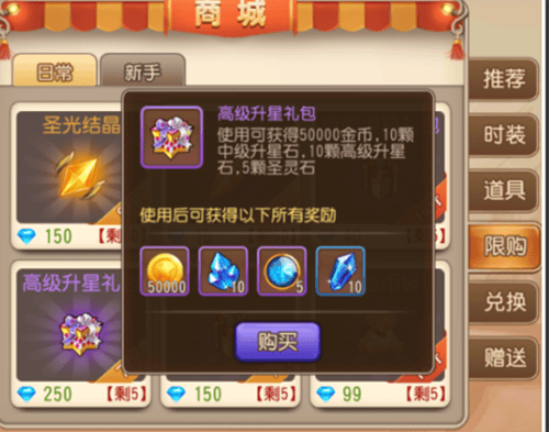 另有一种节省资源的方式:商城限购区提供高级升星礼包。