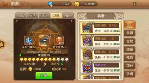 4-8星使用极品升星石,需圣光圣灵石保护(无保护则失败降级,幸运值满100时可卸下),极品升星石由顶级升星石四合一合成;