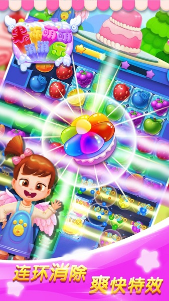 1、消除特效生动有趣,在基础三消的玩法上做了创新,单次消除的糖果数量达到阈值,就会自动生成特殊道具;
