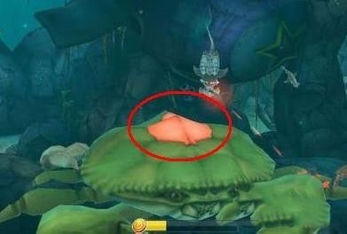 1、先游到螃蟹的上方位置,大概距离螃蟹一个钳子的位置,刚好不会被螃蟹打到的区域,吸引螃蟹发起攻击。