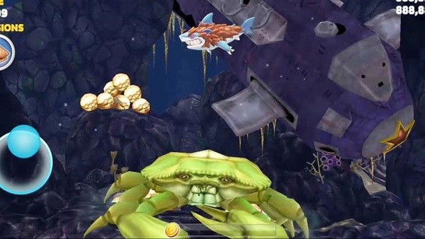 对局的时间越长,鲨鱼的饥饿值消耗速度就越快,所以尽量趁早进入螃蟹洞挑战,尤其是黑螃蟹,挑战前还要先打到50万分才能解锁。