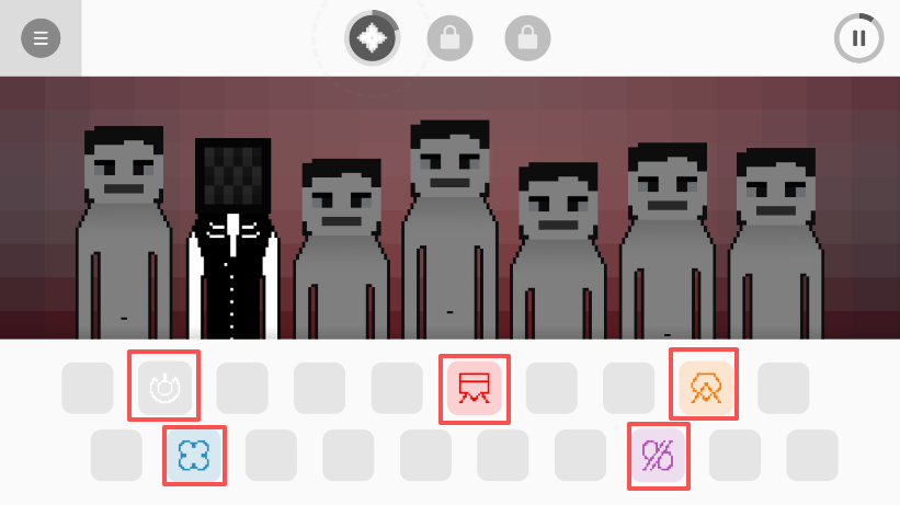 选择角色与音效:游戏内设有多个方块人角色,每个角色可搭配不同的音效装饰物,例如鼓点、贝斯或合成器;玩家需要根据想要的音乐风格挑选合适的角色与音效进行组合。