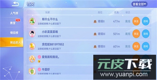 4、系统会显示附近的朋友列表,点击关注即可。