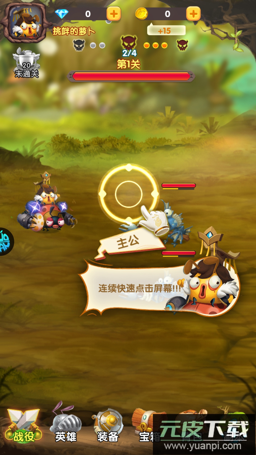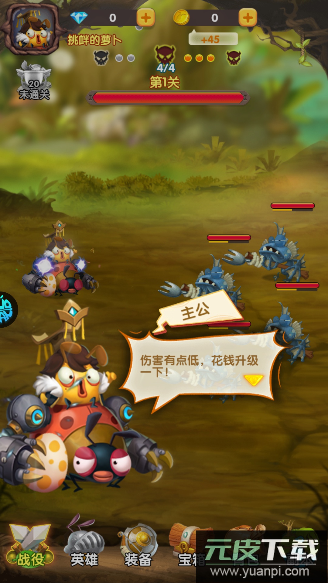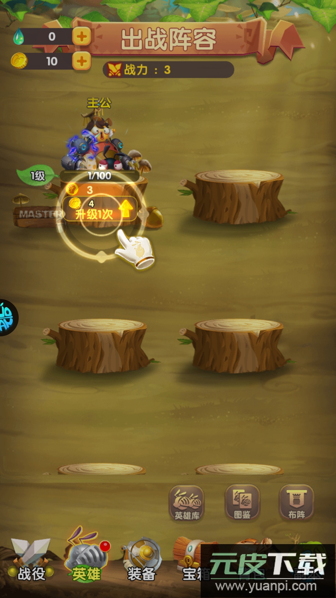 想提升英雄实力,就点击下方“英雄”图标进行强化升级。