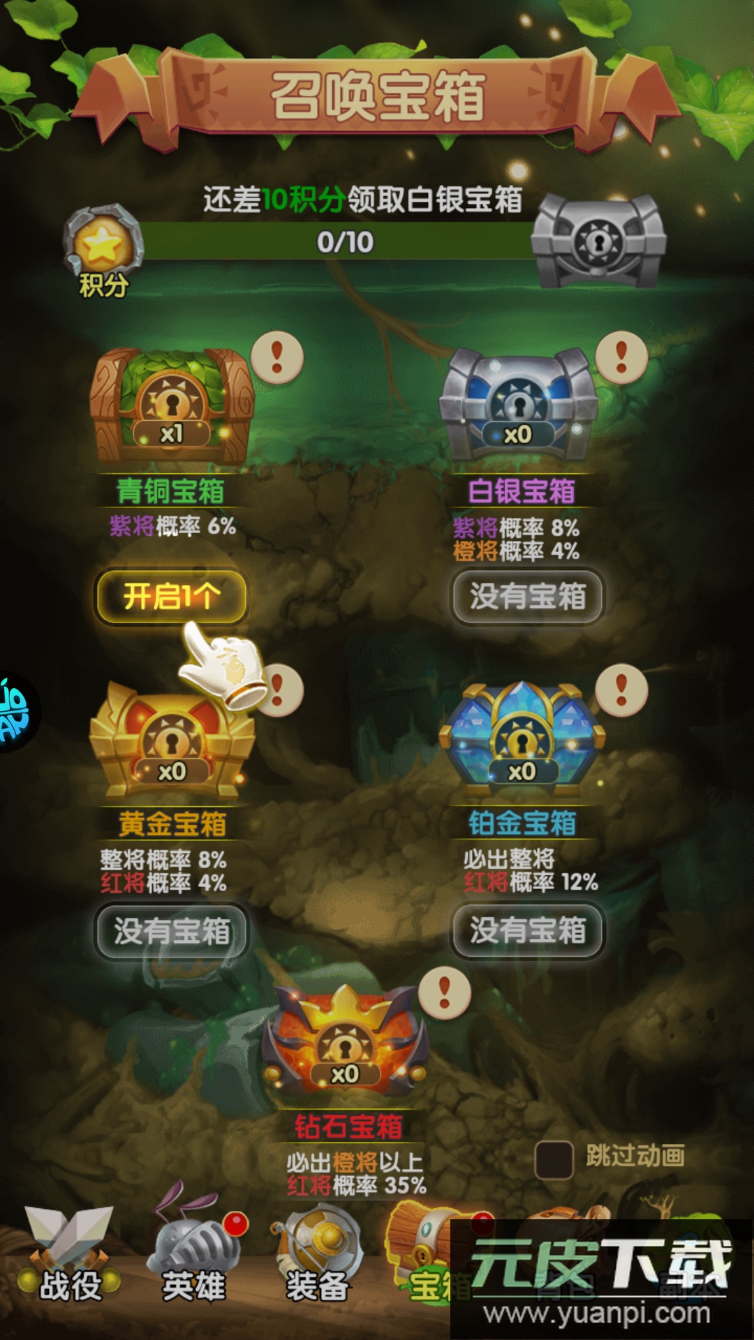开启宝箱可能得到强力英雄。