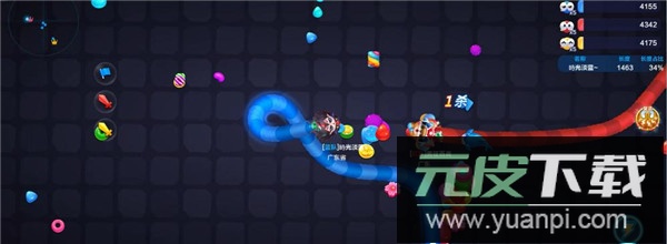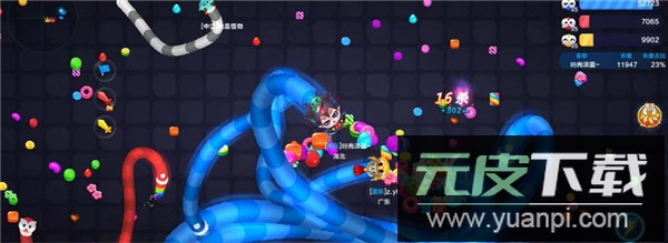 对局中常出现多条蛇混战的场面,此时可以跟随一条大蛇移动,等待机会吞食其他蛇阵亡后留下的大颗粒资源。
