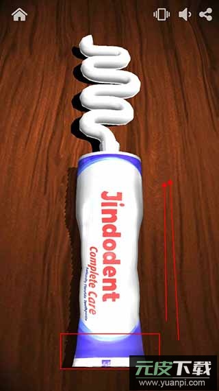 4、游戏页面会显示一支牙膏,从上往下滑动挤压。看着牙膏慢慢被挤出来,能产生减压的满足感,用完以后可以重新开始;