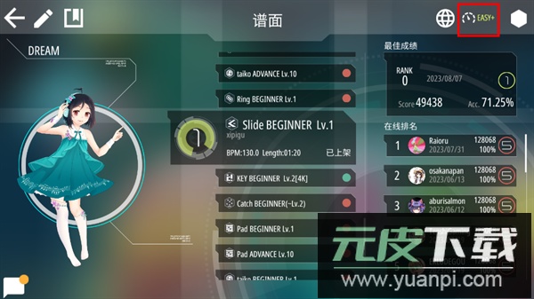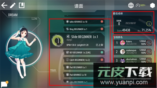 7、选择具体谱面后,可查看排行榜及个人最佳记录;