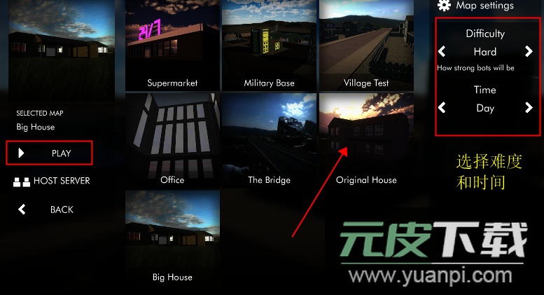 3、设定难度与时间,选择合适的地图,点击开始即可进入;