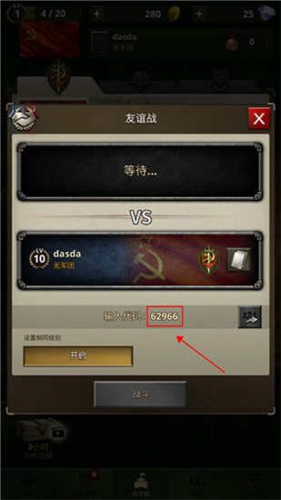 2、在此输入好友提供的房间入场码,点击入场即可;也可点击“开友谊战”自主创建房间。