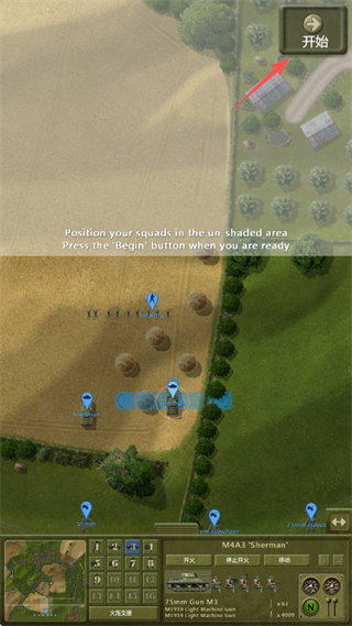 4、战斗开始前,可对部队进行布局调整,规划战术阵型,准备就绪后点击开始进入对战。